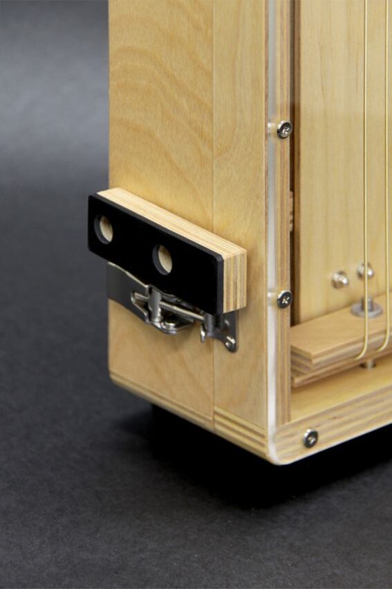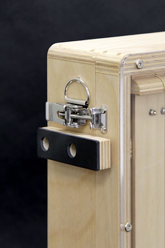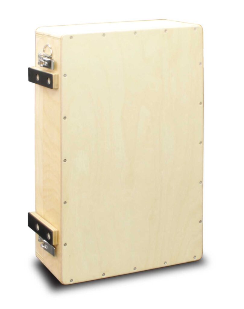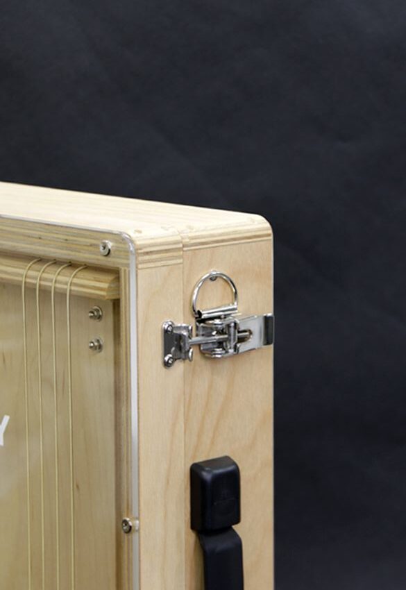 演奏者がカホンに座った時、右側に取手、左側にゴム足が付きます。
